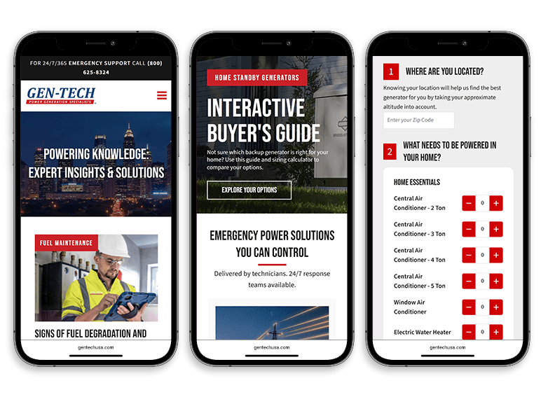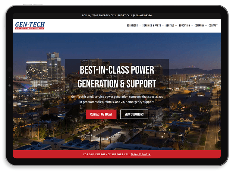 - Implement a modern, mobile-first website to reflect Gen-Tech’s leadership in power generation services